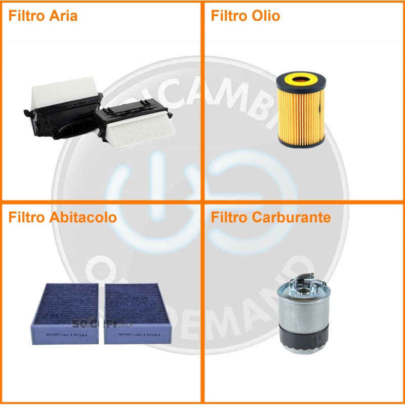 | Composizione | Filtro aria, Filtro gasolio, Filtro olio, Filtro abitacolo ai carboni attivi |