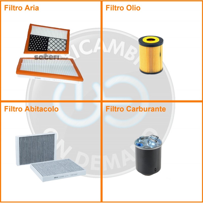 | Composizione | Filtro gasolio, Filtro olio, Filtro abitacolo ai carboni attivi, Filtro aria |