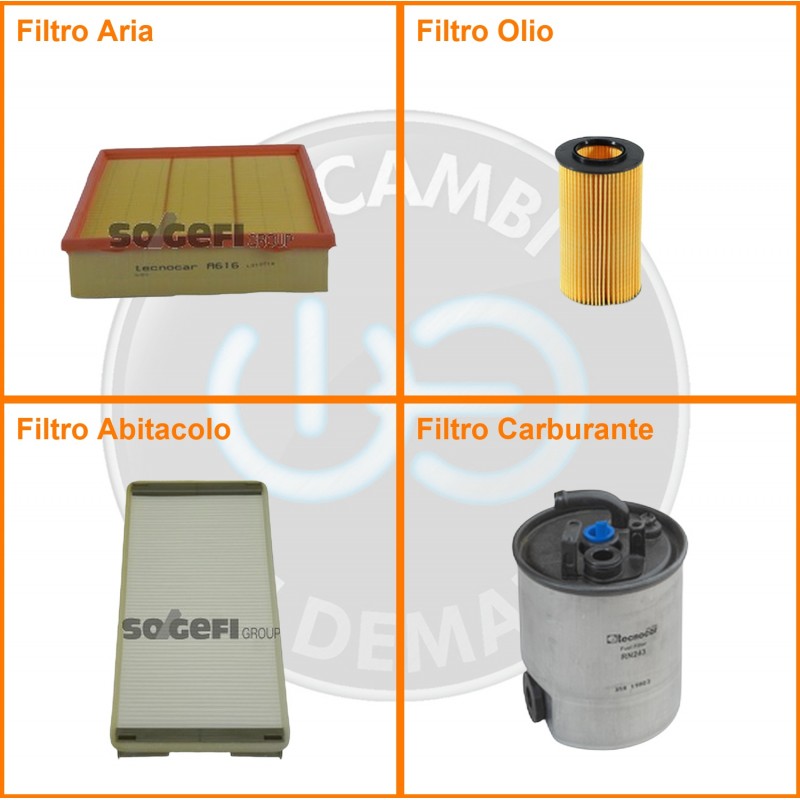 | Composizione | Filtro gasolio, Filtro olio, Filtro abitacolo, Filtro aria |