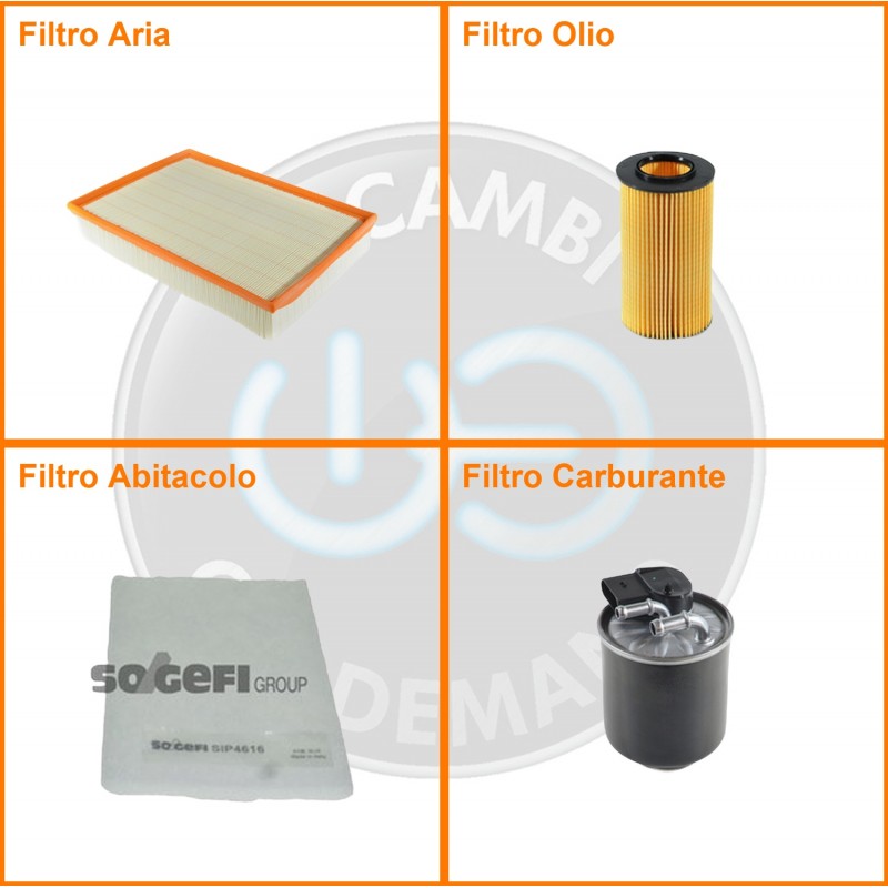 | Composizione | Filtro gasolio, Filtro olio, Filtro abitacolo, Filtro aria |