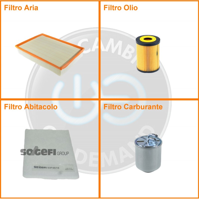 | Composizione | Filtro abitacolo, Filtro aria, Filtro gasolio, Filtro olio |
