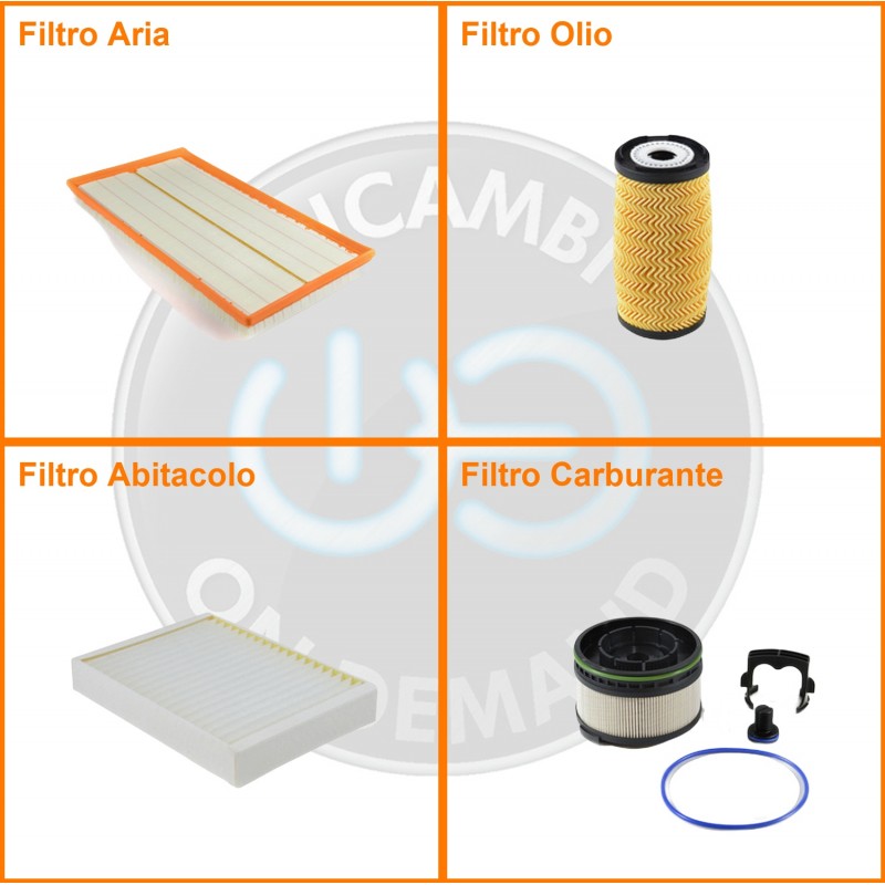 | Composizione | Filtro abitacolo, Filtro aria, Filtro gasolio, Filtro olio |