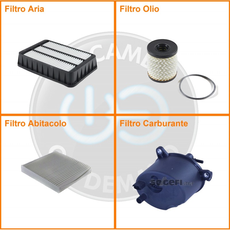 | Composizione | Filtro gasolio, Filtro olio, Filtro abitacolo, Filtro aria |