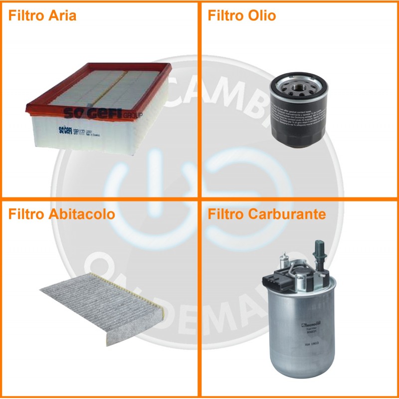 | Composizione | Filtro gasolio, Filtro olio, Filtro abitacolo ai carboni attivi, Filtro aria |