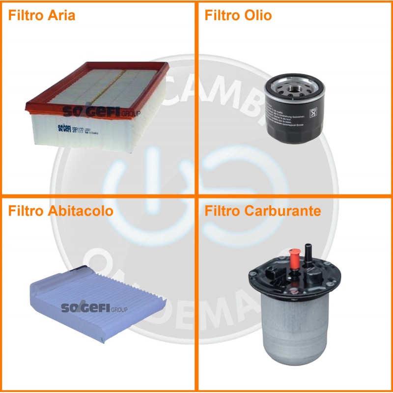 | Composizione | Filtro gasolio, Filtro olio, Filtro abitacolo, Filtro aria |