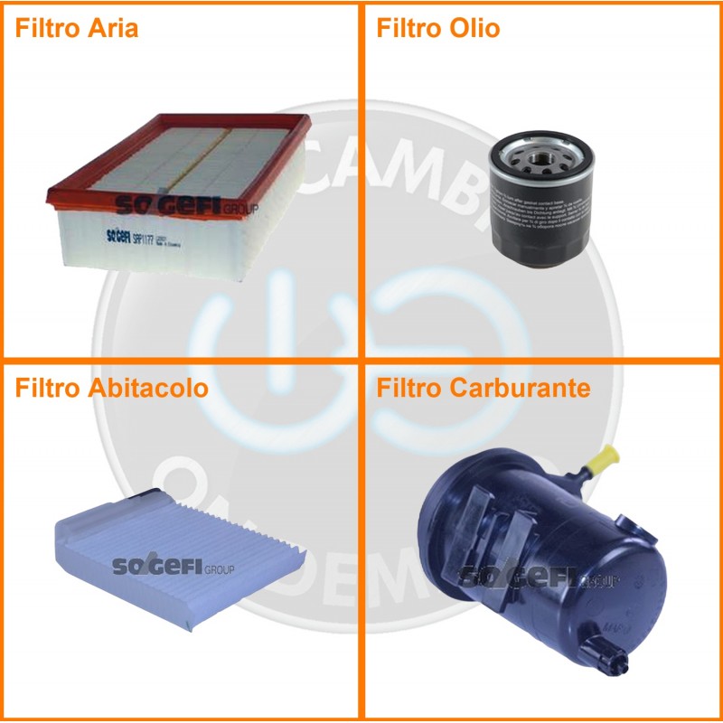 | Composizione | Filtro gasolio, Filtro olio, Filtro abitacolo, Filtro aria |