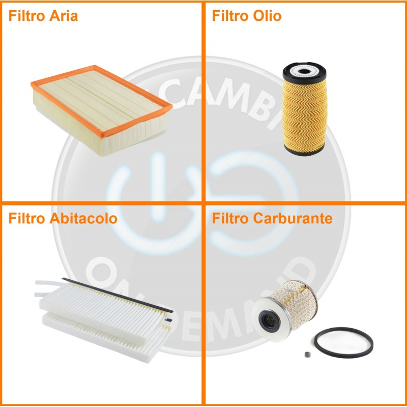 | Composizione | Filtro gasolio, Filtro olio, Filtro abitacolo, Filtro aria |