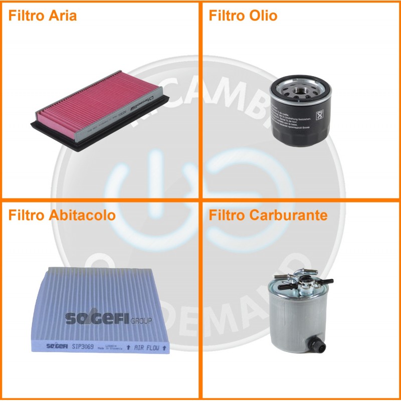 | Composizione | Filtro gasolio, Filtro olio, Filtro abitacolo, Filtro aria |