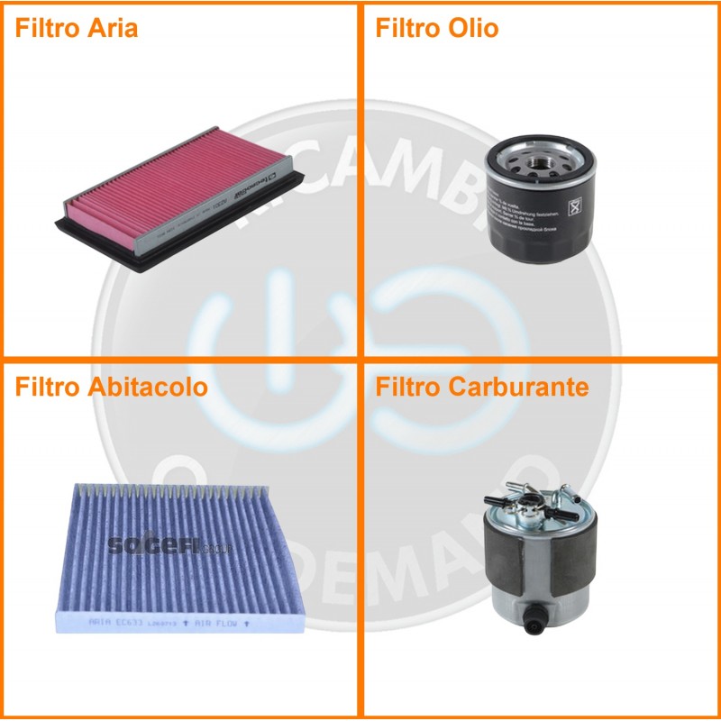 | Composizione | Filtro gasolio, Filtro olio, Filtro abitacolo ai carboni attivi, Filtro aria |