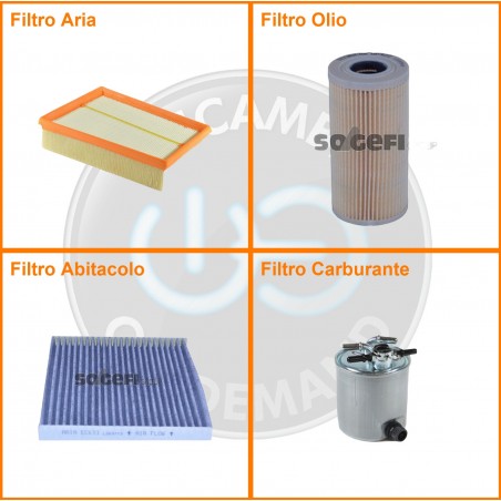 | Composizione | Filtro gasolio, Filtro olio, Filtro abitacolo ai carboni attivi, Filtro aria |