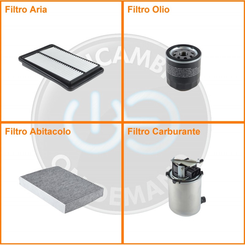 | Composizione | Filtro gasolio, Filtro olio, Filtro abitacolo ai carboni attivi, Filtro aria |