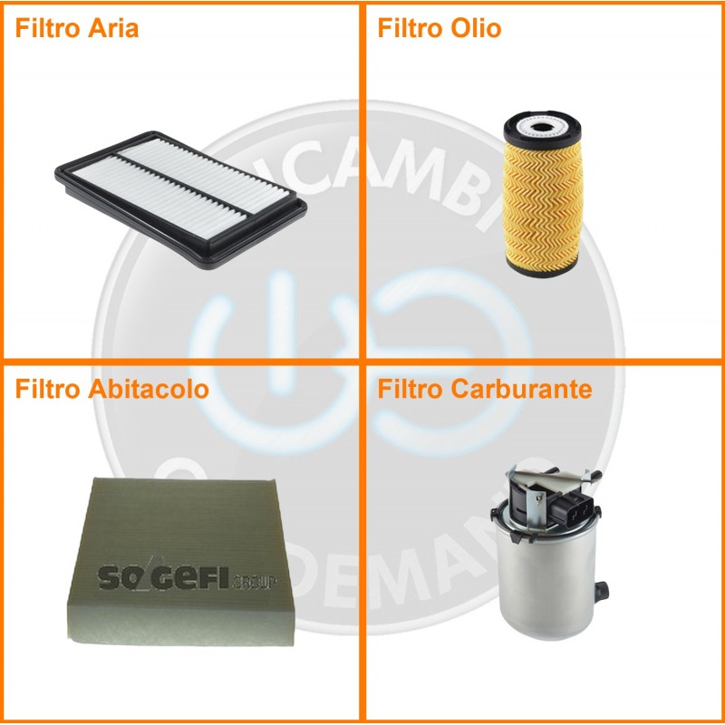 | Composizione | Filtro gasolio, Filtro olio, Filtro abitacolo, Filtro aria |