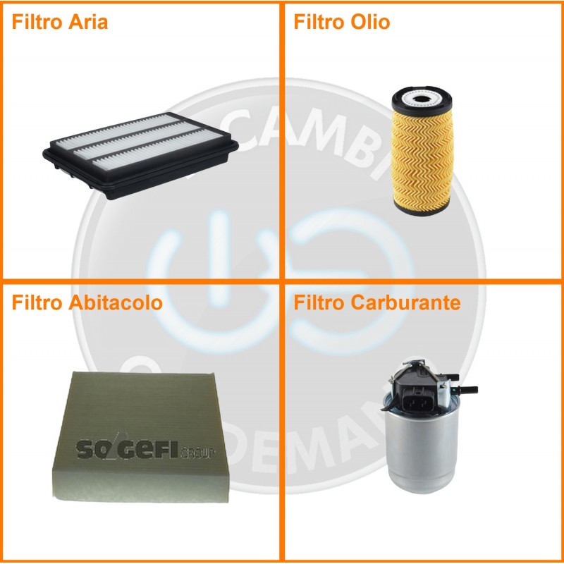 | Composizione | Filtro gasolio, Filtro olio, Filtro abitacolo, Filtro aria |