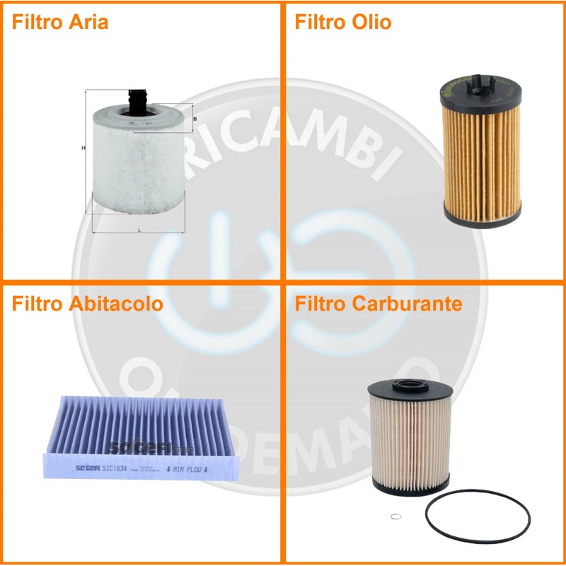 | Composizione | Filtro abitacolo ai carboni attivi, Filtro aria, Filtro gasolio, Filtro olio |