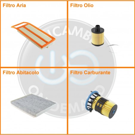 | Composizione | Filtro gasolio, Filtro olio, Filtro abitacolo ai carboni attivi, Filtro aria |
