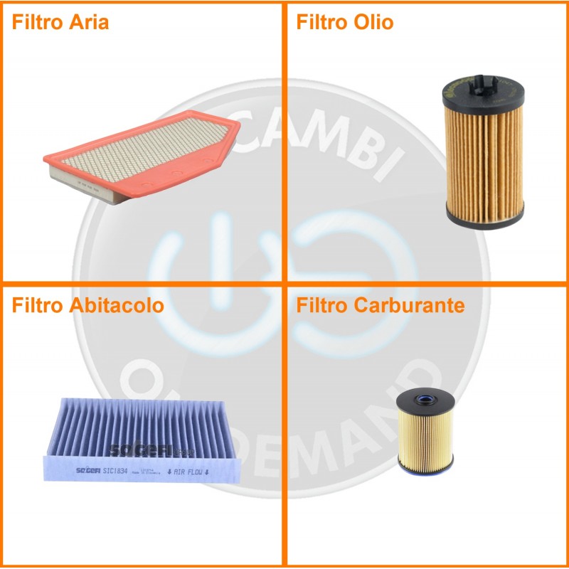 | Composizione | Filtro gasolio, Filtro olio, Filtro abitacolo ai carboni attivi, Filtro aria |