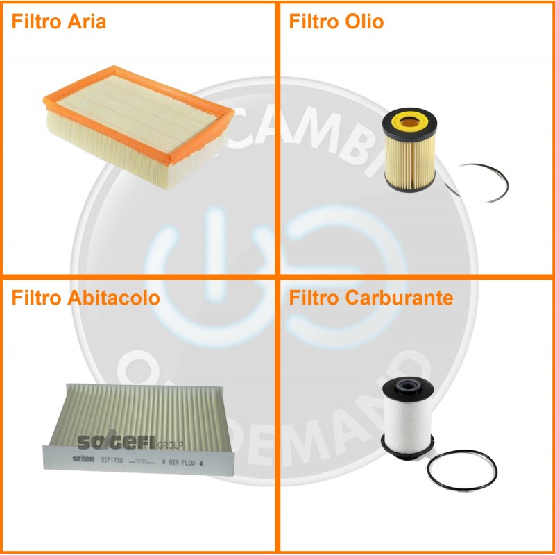 | Composizione | Filtro gasolio, Filtro olio, Filtro abitacolo, Filtro aria |