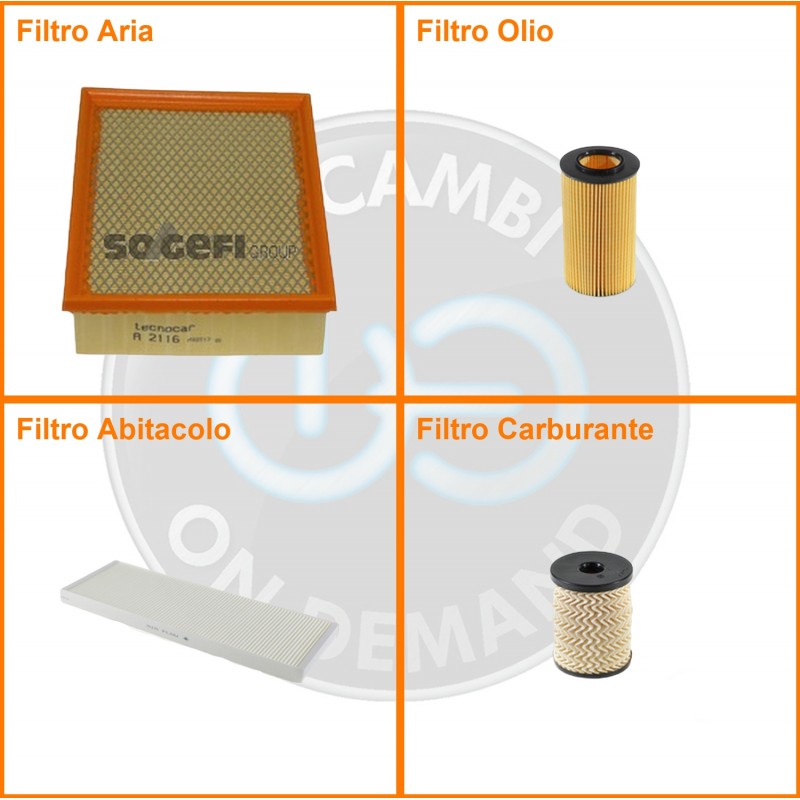 | Composizione | Filtro gasolio, Filtro olio, Filtro abitacolo, Filtro aria |