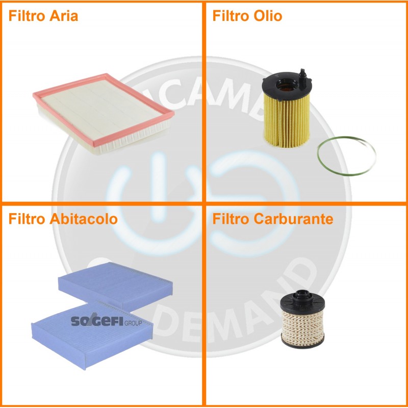 | Composizione | Filtro gasolio, Filtro olio, Filtro abitacolo, Filtro aria |