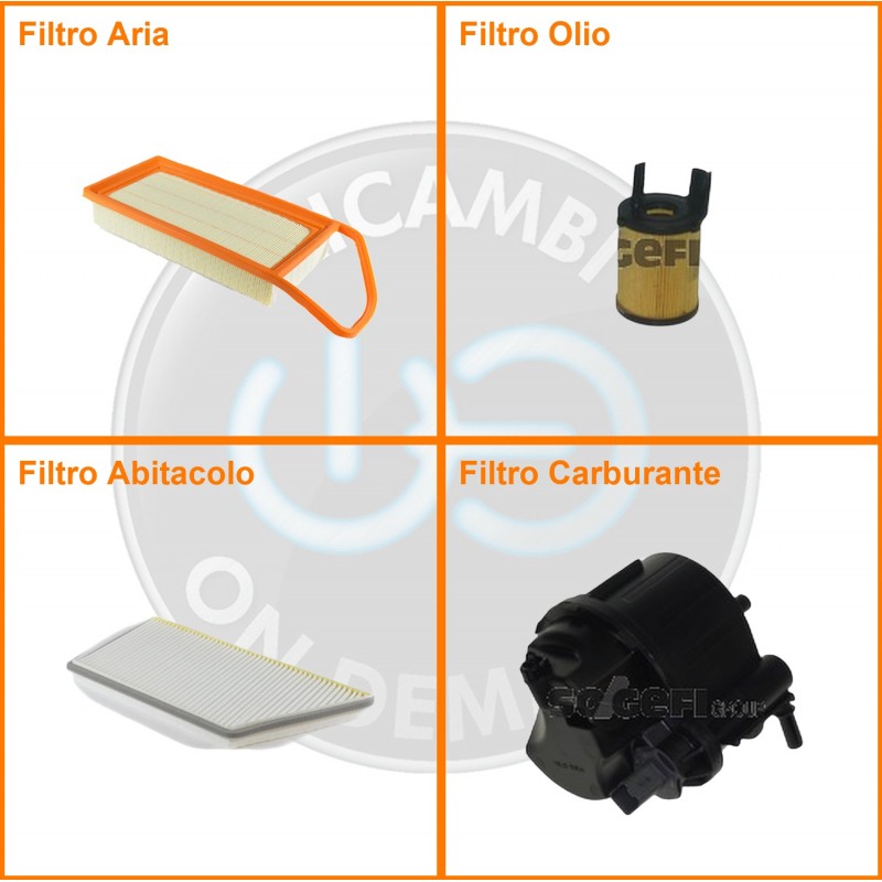 | Composizione | Filtro gasolio, Filtro olio, Filtro abitacolo, Filtro aria |