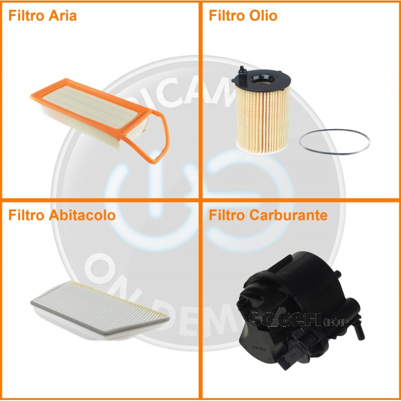 | Composizione | Filtro olio, Filtro abitacolo, Filtro aria, Filtro gasolio |