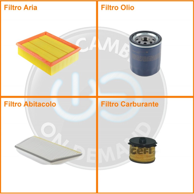 | Composizione | Filtro olio, Filtro abitacolo, Filtro aria, Filtro gasolio |