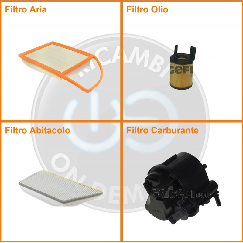 | Composizione | Filtro olio, Filtro abitacolo, Filtro aria, Filtro gasolio |