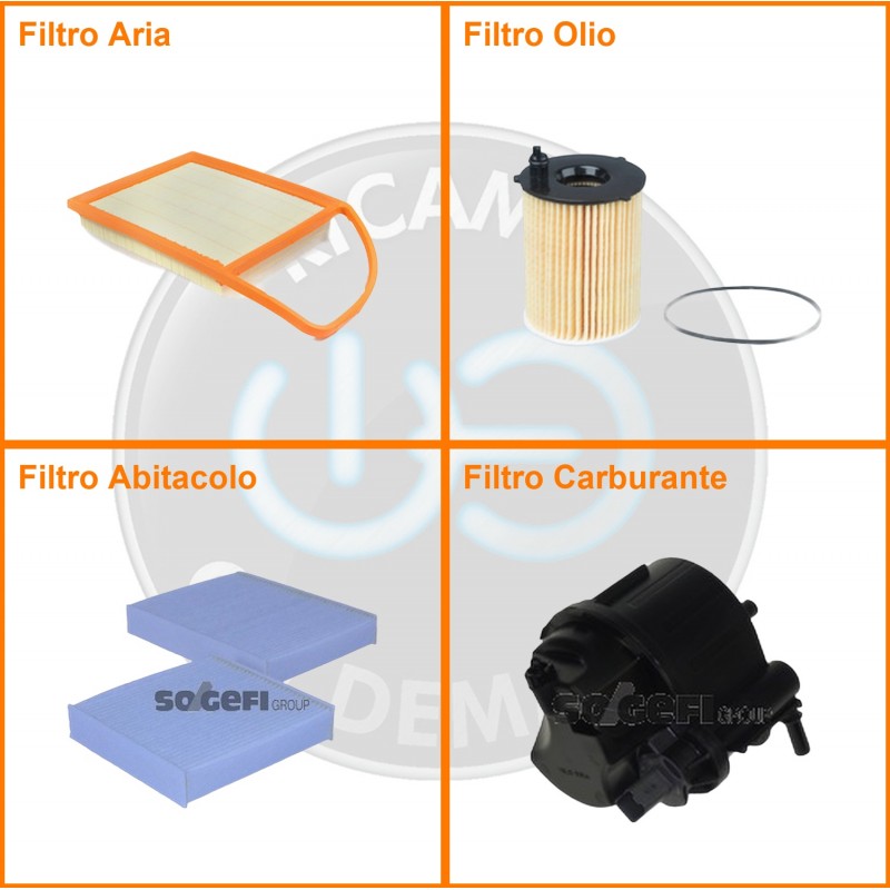 | Composizione | Filtro olio, Filtro abitacolo, Filtro aria, Filtro gasolio |