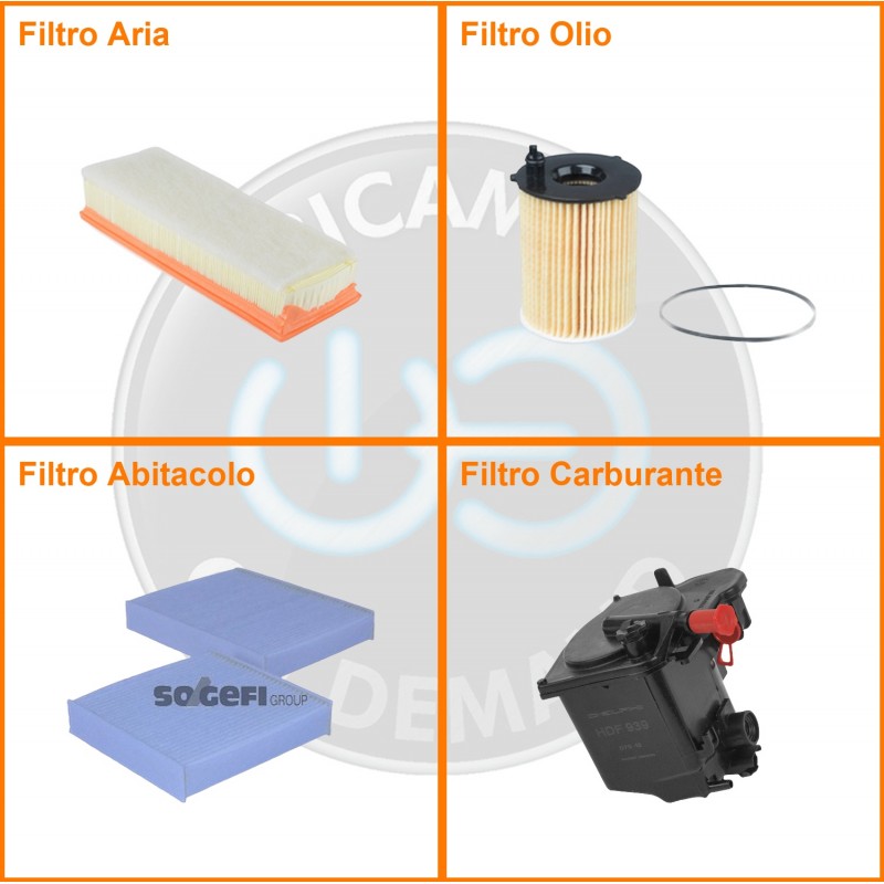 | Composizione | Filtro gasolio, Filtro olio, Filtro abitacolo, Filtro aria |