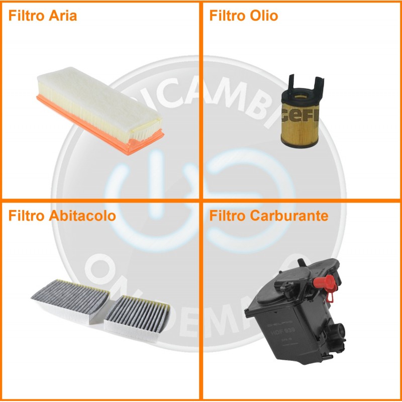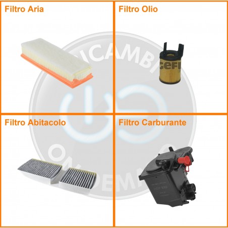 | Composizione | Filtro olio, Filtro abitacolo ai carboni attivi, Filtro aria, Filtro gasolio |