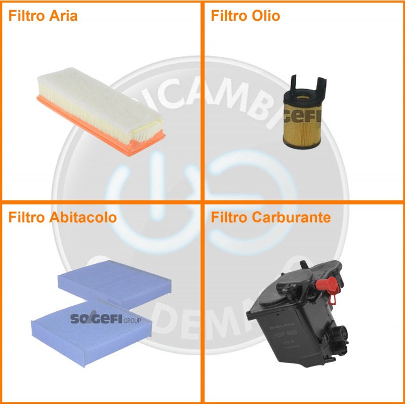 | Composizione | Filtro abitacolo, Filtro aria, Filtro gasolio, Filtro olio |