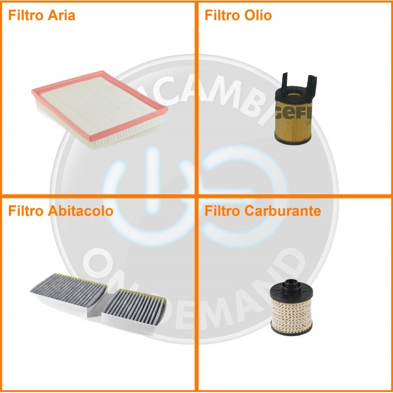 | Composizione | Filtro gasolio, Filtro olio, Filtro abitacolo ai carboni attivi, Filtro aria |