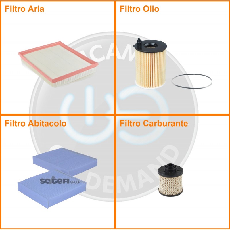 | Composizione | Filtro gasolio, Filtro olio, Filtro abitacolo, Filtro aria |