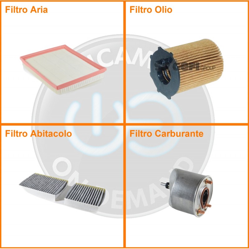 | Composizione | Filtro gasolio, Filtro olio, Filtro abitacolo ai carboni attivi, Filtro aria |