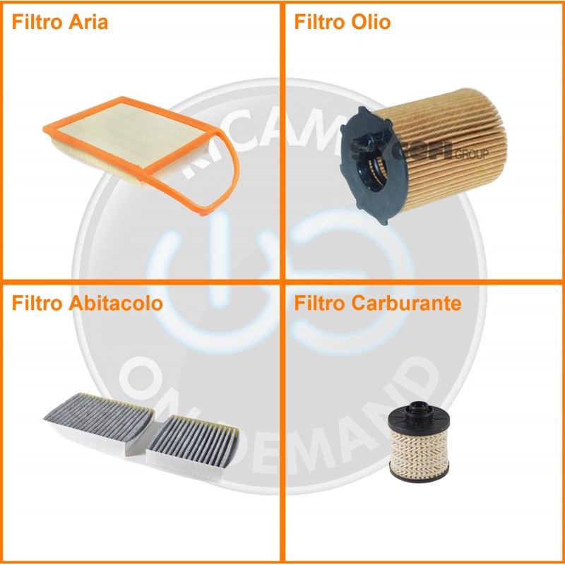 | Composizione | Filtro gasolio, Filtro olio, Filtro abitacolo ai carboni attivi, Filtro aria |