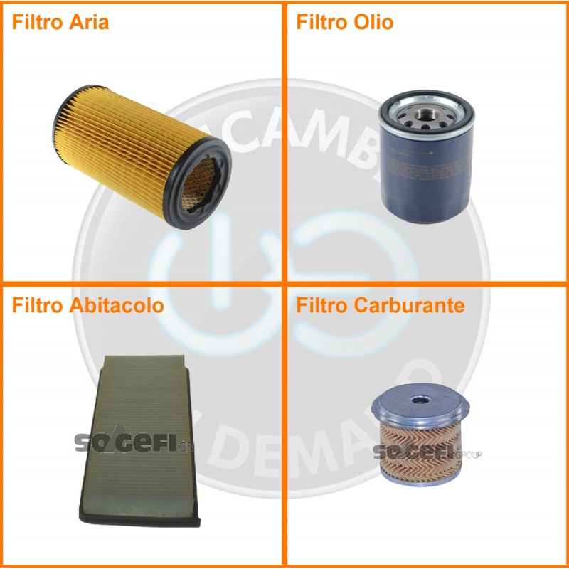 | Composizione | Filtro abitacolo, Filtro aria, Filtro gasolio, Filtro olio |