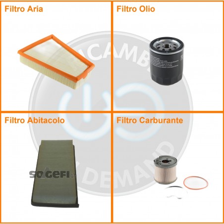 | Composizione | Filtro gasolio, Filtro olio, Filtro abitacolo, Filtro aria |