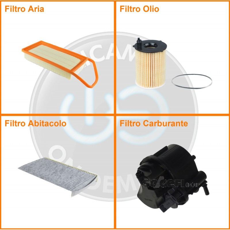 | Composizione | Filtro gasolio, Filtro olio, Filtro abitacolo ai carboni attivi, Filtro aria |