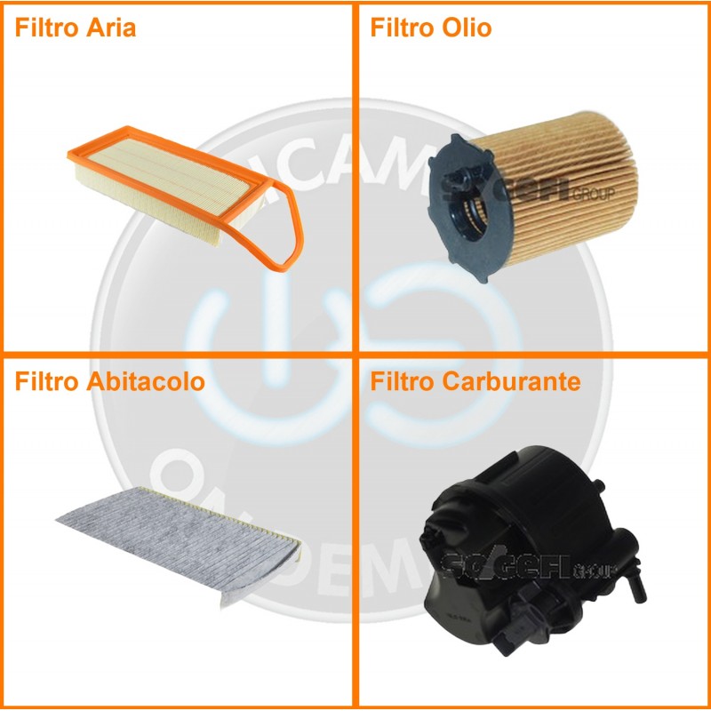 | Composizione | Filtro gasolio, Filtro olio, Filtro abitacolo ai carboni attivi, Filtro aria |
