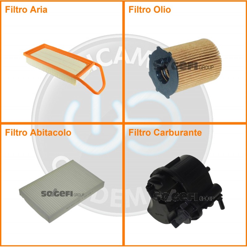 | Composizione | Filtro gasolio, Filtro olio, Filtro abitacolo, Filtro aria |