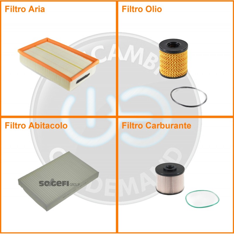 | Composizione | Filtro gasolio, Filtro olio, Filtro abitacolo, Filtro aria |