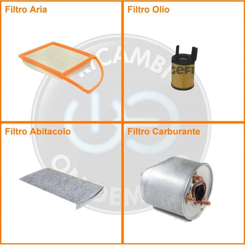 | Composizione | Filtro gasolio, Filtro olio, Filtro abitacolo ai carboni attivi, Filtro aria |