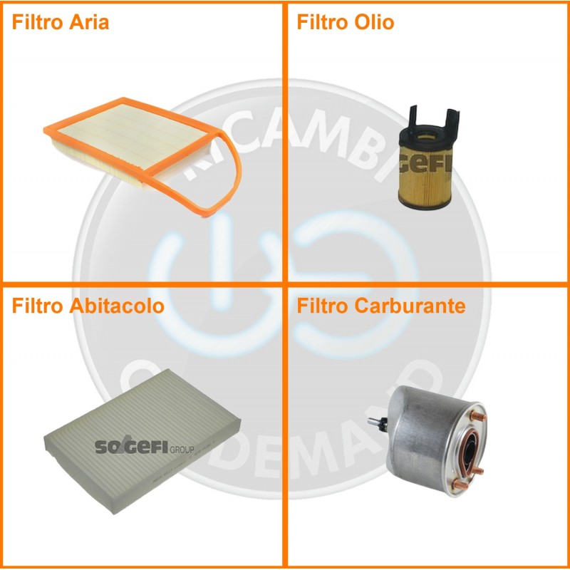 | Composizione | Filtro gasolio, Filtro olio, Filtro abitacolo, Filtro aria |