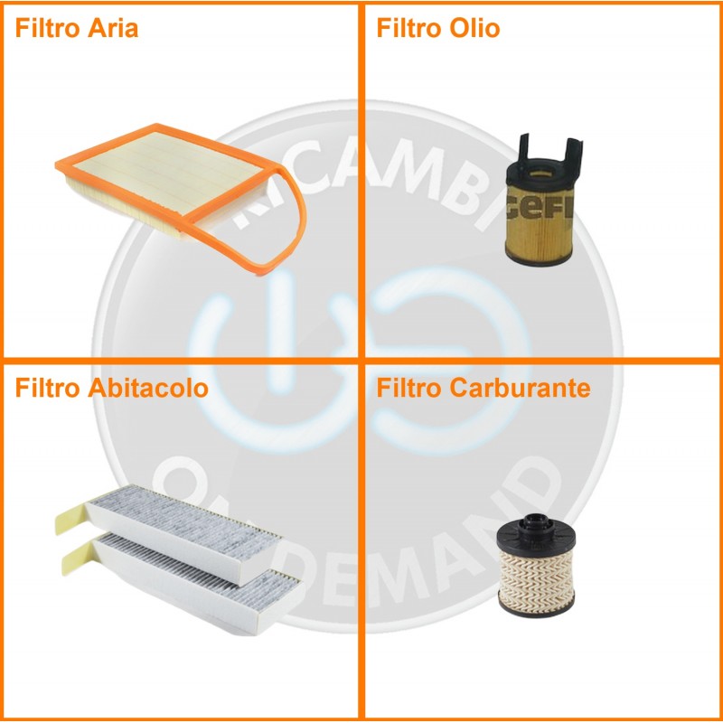 | Composizione | Filtro gasolio, Filtro olio, Filtro abitacolo ai carboni attivi, Filtro aria |