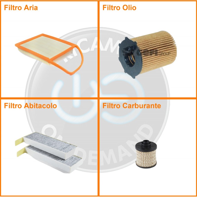| Composizione | Filtro gasolio, Filtro olio, Filtro abitacolo ai carboni attivi, Filtro aria |