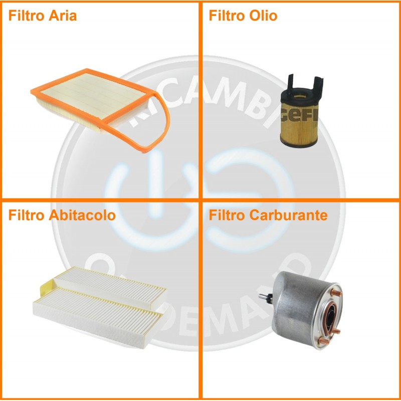 | Composizione | Filtro gasolio, Filtro olio, Filtro abitacolo, Filtro aria |