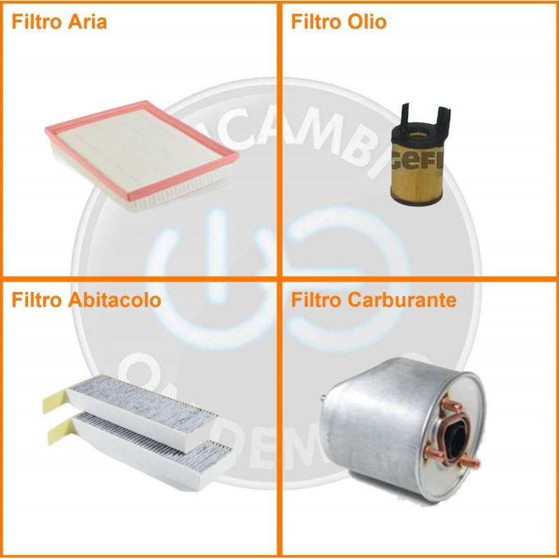 | Composizione | Filtro gasolio, Filtro olio, Filtro abitacolo ai carboni attivi, Filtro aria |