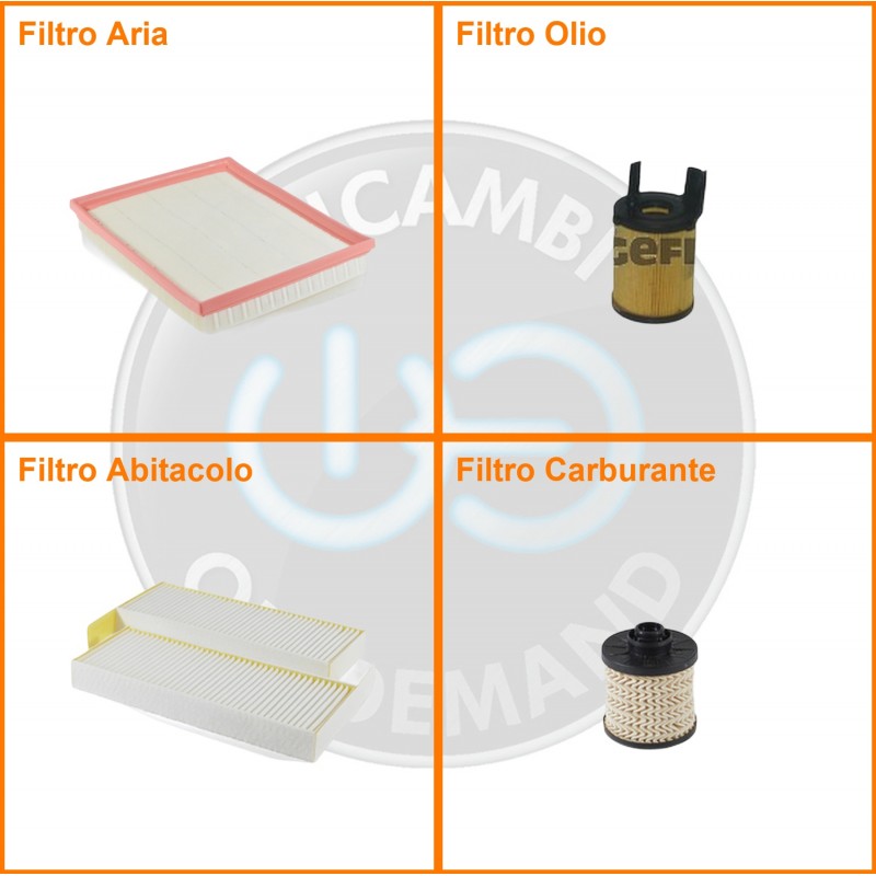 | Composizione | Filtro gasolio, Filtro olio, Filtro abitacolo, Filtro aria |