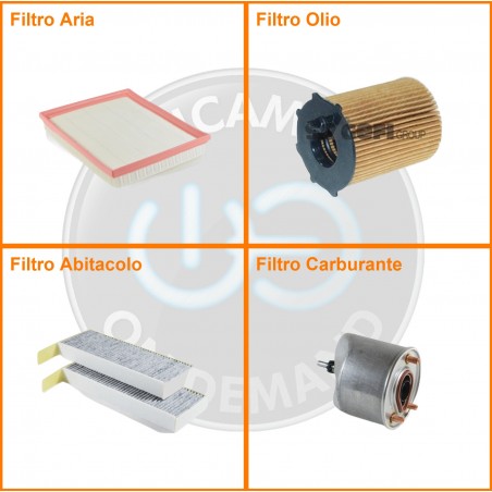 ComposizioneFiltro gasolio, Filtro olio, Filtro abitacolo ai carboni attivi, Filtro aria