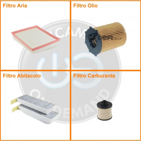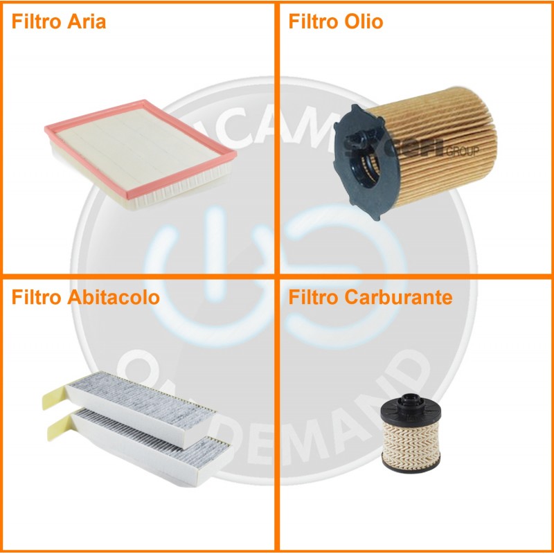 ComposizioneFiltro gasolio, Filtro olio, Filtro abitacolo ai carboni attivi, Filtro aria